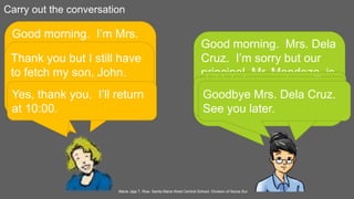 The document discusses the differences between commands and requests in sentences. Commands typically use an imperative verb like "speak up" and end with a period, while requests often include "please" or "may I" and end with a question mark. Examples of commands and requests are provided to illustrate how word choice and punctuation indicate whether a sentence is a command or request. The document also includes exercises for readers to practice identifying commands and requests in sample sentences.