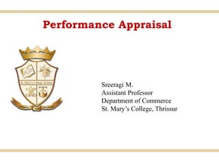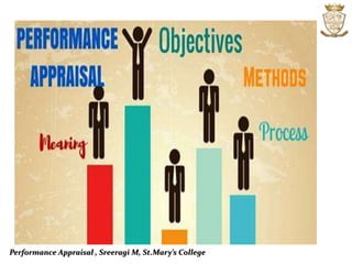 The document discusses performance appraisal, which is the process of assessing and developing employee work performance. It outlines the objectives, methods (both traditional and modern), and processes involved in performance appraisal, including setting standards, measuring performance, and evaluating results. Various methods are elaborated, such as ranking, paired comparison, management by objectives, and behaviorally anchored rating scales.