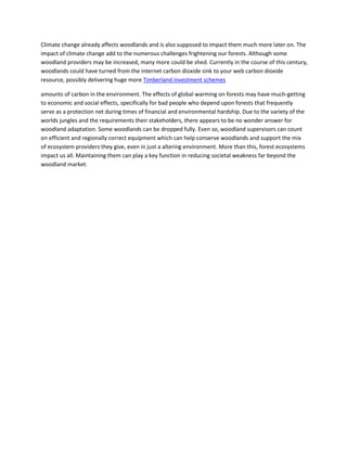 Climate change is already affecting forests and is expected to have a greater impact in the future, adding to the many challenges they face. Many forests could be lost this century as forests may switch from carbon sinks to carbon sources, releasing large amounts of carbon. The effects of global warming on forests will likely have significant economic and social consequences, especially for vulnerable people who depend on forests for protection during hard times. While some forests may disappear completely, forest managers can help conserve forests and the ecosystem services they provide through effective, locally-adapted practices even in a changing environment. Maintaining forests can play a key role in reducing broader social vulnerability.