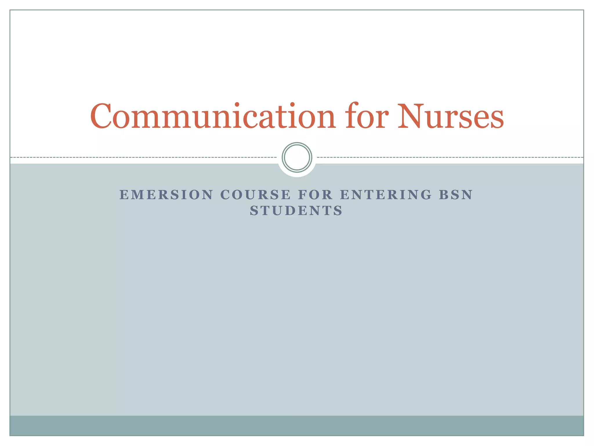 This document discusses different types of communication for nurses, including verbal and non-verbal communication. It explains that verbal communication can be subject to misinterpretation depending on language, intent, and cultural understanding. Non-verbal communication such as body language and facial expressions can also be culturally interpreted and is often more powerful than verbal communication. The document then describes effective communication, therapeutic communication, and professional communication for nurses and provides examples of each. It also lists facilitators and barriers to communication.