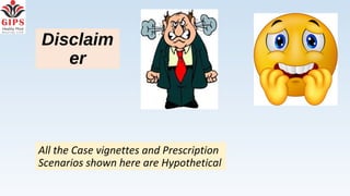 The document discusses common prescribing mistakes in elderly patients, emphasizing the importance of accurate diagnosis, careful medication management, and avoiding polypharmacy. It highlights various prescription scenarios with examples of inappropriate drug combinations and the need for non-pharmacologic therapies. Key points include the risks of adverse drug events, drug interactions, and the necessity of monitoring and titration to enhance patient safety.