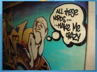 This document discusses commonly confused words in the English language. It identifies four main categories of confused words: 1) homophones that sound the same but have different meanings, 2) etymological/functional variations that come from the same root but have different parts of speech or meanings, 3) transcriptions of colloquialisms that are spelled how they sound in dialects but are different words, and 4) antonyms that are opposite in meaning but not spelling or pronunciation. Examples are provided for each category to illustrate words that are often mixed up.