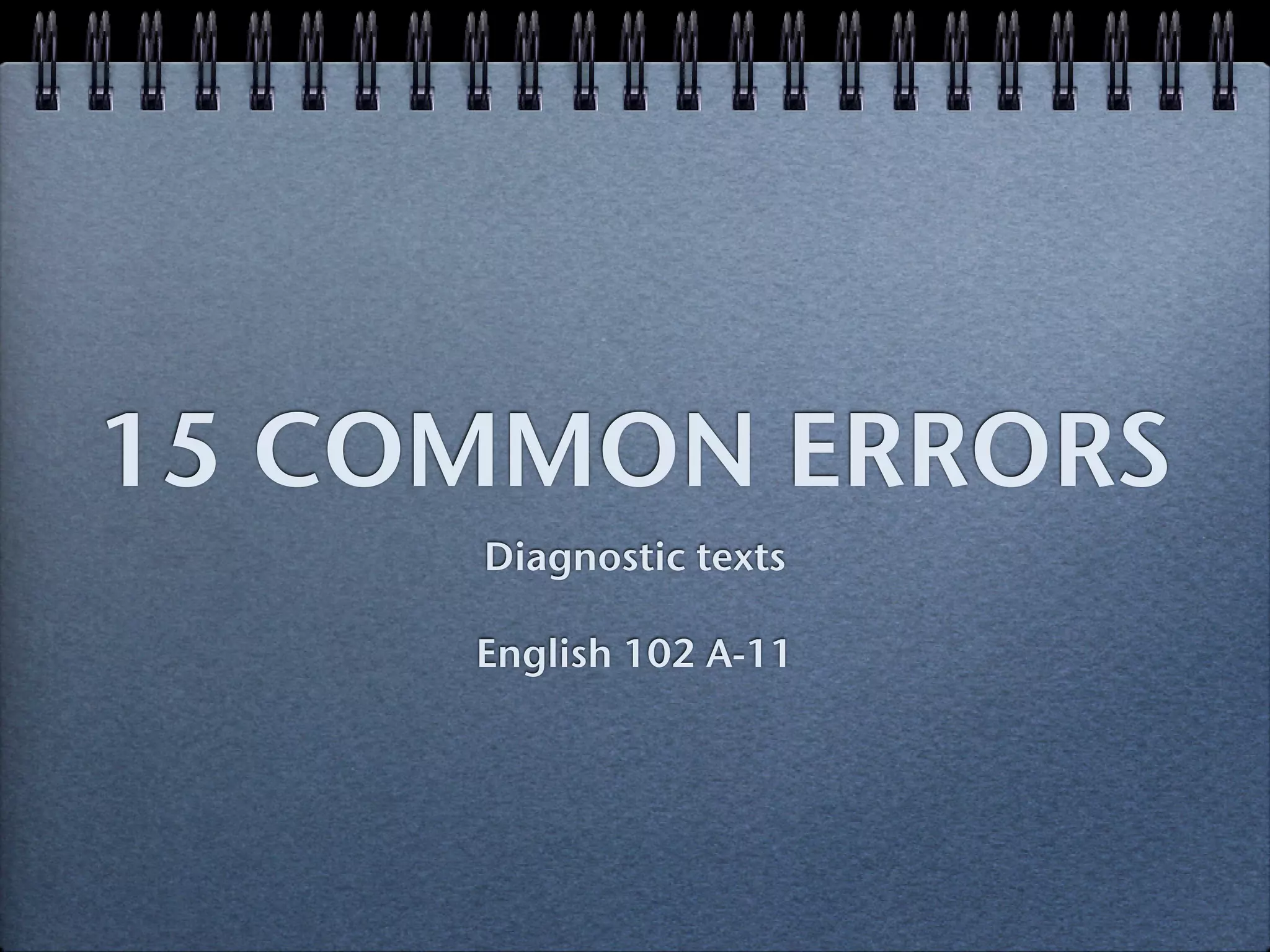 This document contains examples of common errors from student writing and their corrections. It provides 8 examples of errors in areas such as verb tense, subject-verb agreement, word choice, punctuation and grammar. Each error is underlined and followed by the correction. The purpose is to help students identify and learn from typical mistakes.