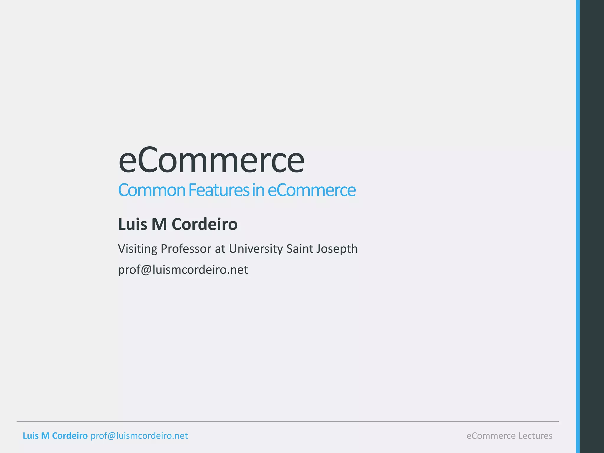 This document outlines common features that should be included in eCommerce websites, as presented by Luis M Cordeiro, a visiting professor of eCommerce. It discusses features like registration/login, shopping carts, advanced product search, security, payment gateways, customization, and shipping. Payment gateways can be offsite or use component-based systems with SDKs. Security requires SSL certificates and HTTPS. Customization tailors the site based on user data. Shipping options include manual, automatic through partners, or default fixed rates.