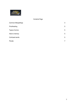 This document provides guidance on common spelling mistakes and proofreading. It includes:
