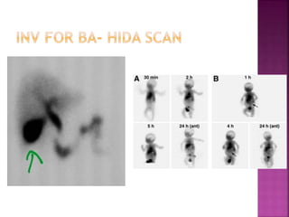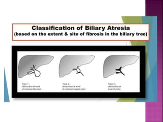 3. Signs, investigations, and management are described for different conditions like biliary atresia.