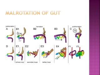 The document discusses various pediatric gastrointestinal disorders including: