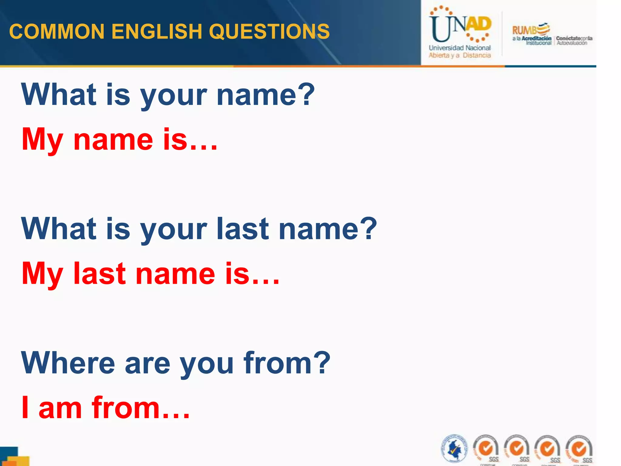 The document lists common questions asked in English with sample responses, including questions about personal details like name, age, marital status and family as well as questions about occupation, location, feelings, preferences for food and sports, activities during free time, requests for clarification and assistance. It provides examples of basic introductory questions and responses for English language learners.