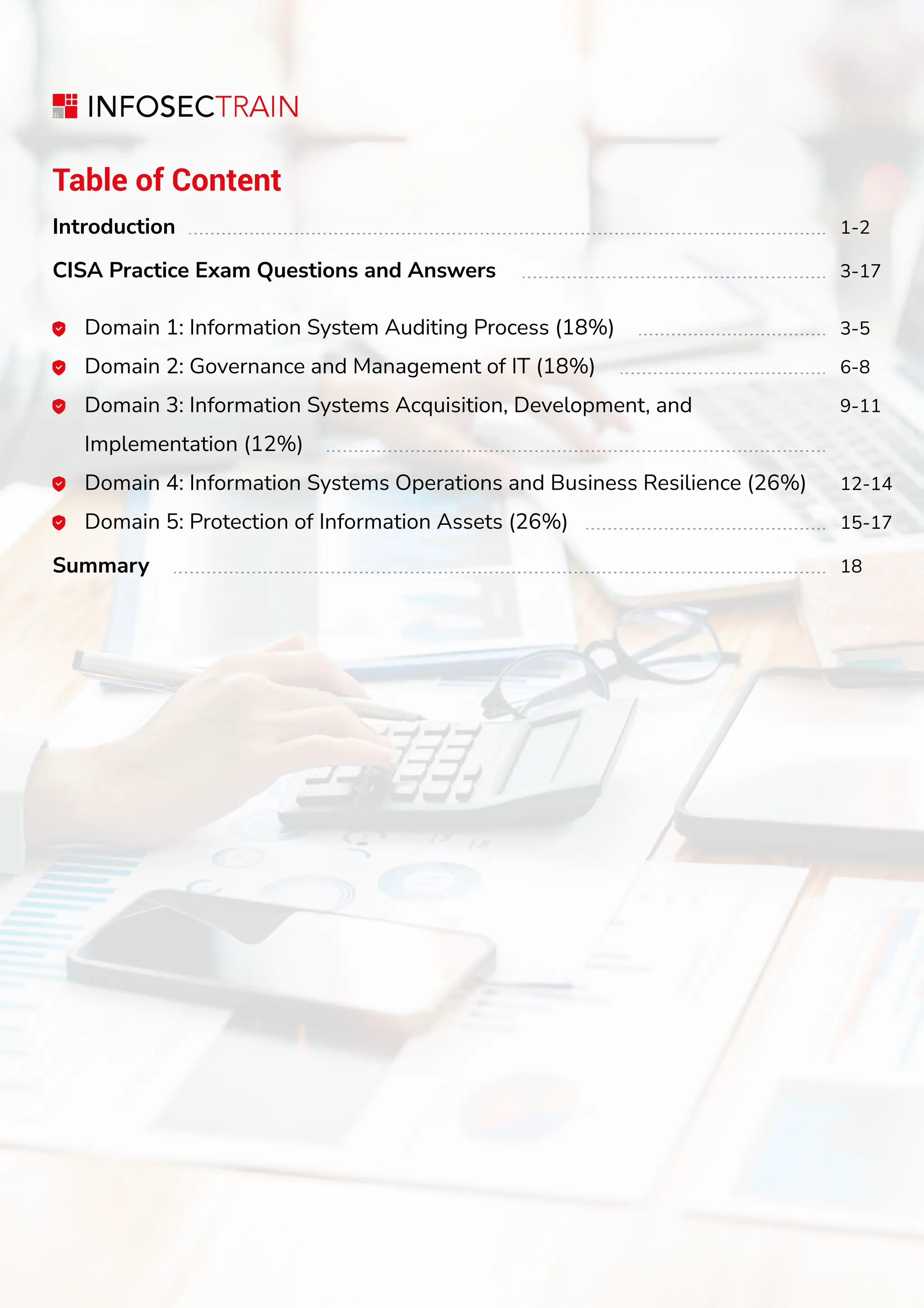 This guide offers an overview of the key domains in the Certified Information Systems Auditor (CISA) exam, focusing on critical areas such as auditing processes, IT governance, systems acquisition, operations resilience, and protection of information assets. Each domain is illustrated with practice questions and explanations to aid candidates in their exam preparation and enhance their careers in IT auditing. The content aims to equip professionals with essential knowledge and skills necessary for success in the field.