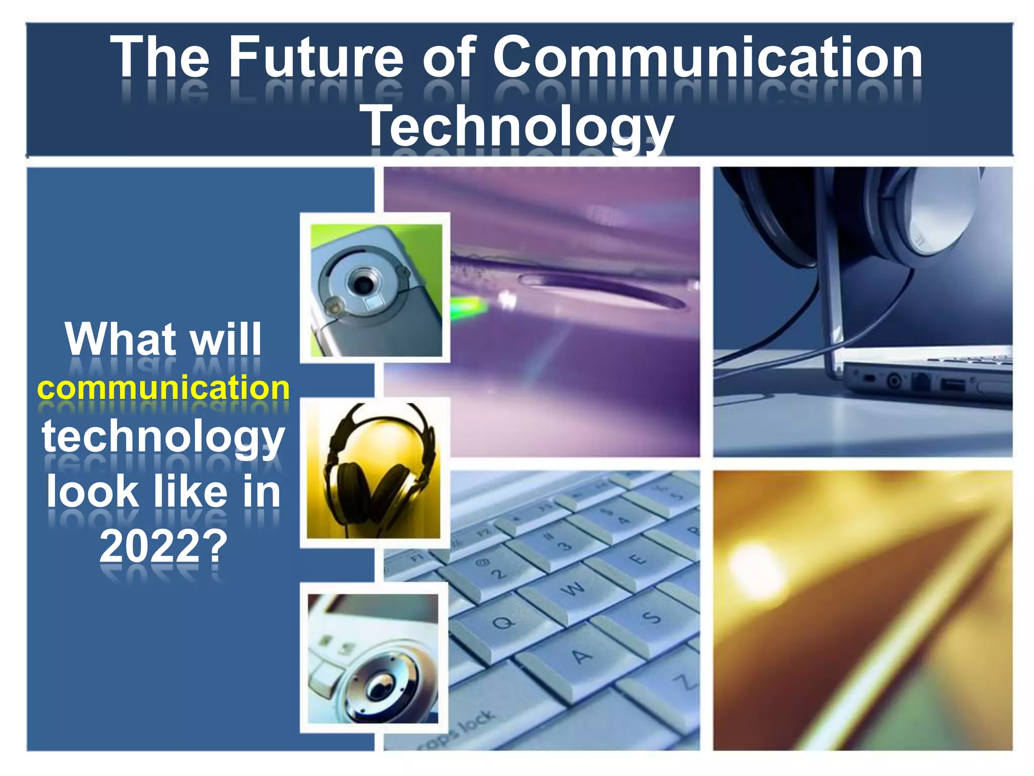 The document discusses the history and future of communication technology including telephones, the internet, and social media. Key developments in telephones over time are highlighted from 1834 to present. The future of telephones in 2022 is envisioned to have fully voice-controlled interfaces and 3D imaging capabilities. The growth of the internet is also discussed, predicting a fully connected world where computers are unnecessary and commands can be done by mind. Lastly, the document summarizes the founding and growth of Facebook and Twitter, and envisions social media in 2022 targeting personalized advertising through location data and integrating live video/virtual interactions.
