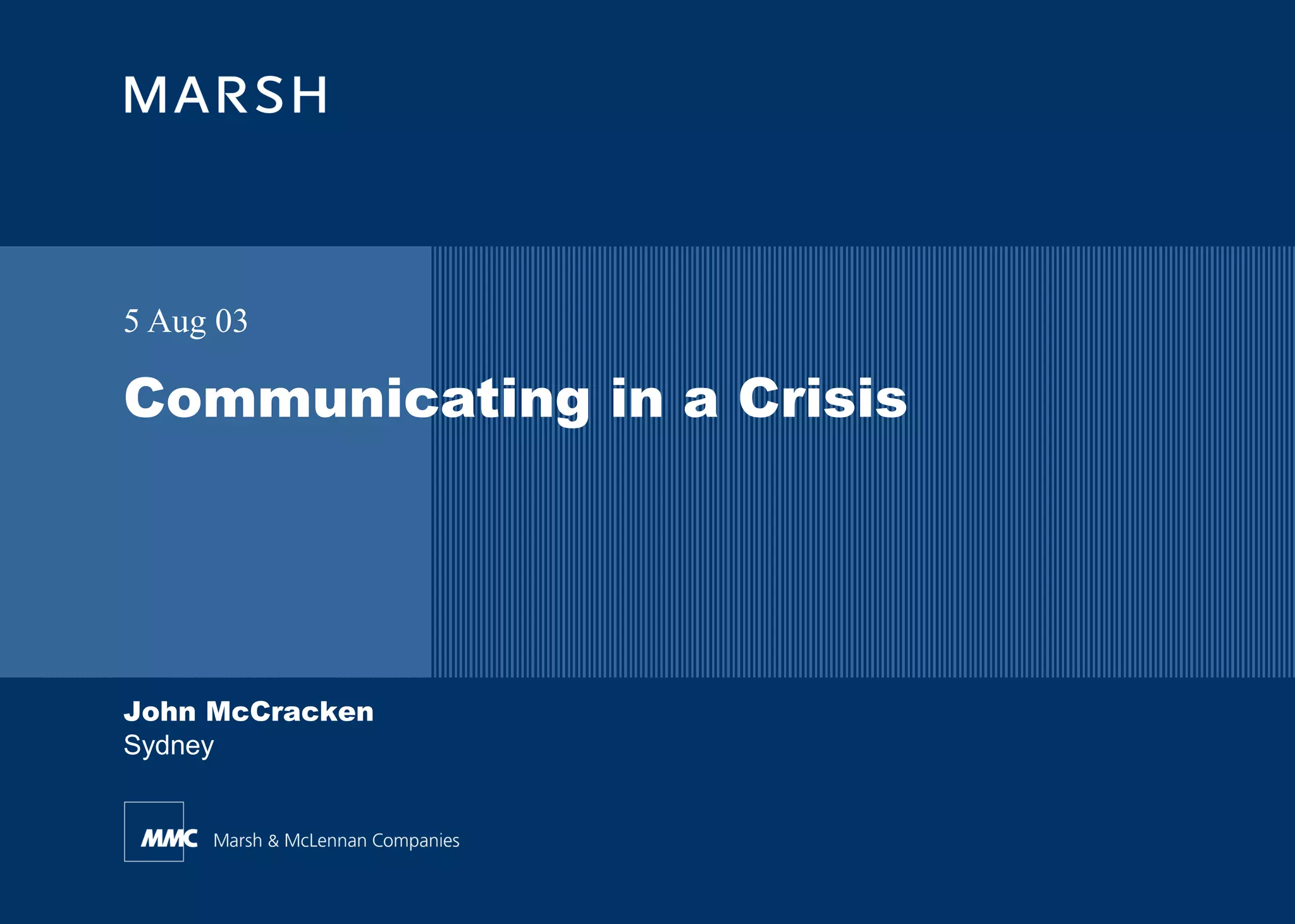 This document discusses communicating during a crisis. It defines a crisis as an escalating incident that threatens an organization. Crisis management aims to minimize potential impact through response, recovery, and restoration strategies. Communicating with stakeholders is an important part of crisis management, as effective communication can reduce reputational damage while poor communication can cause a rapid loss of control. The document provides tips for developing communication strategies and addressing issues with internal and external stakeholders during a crisis.