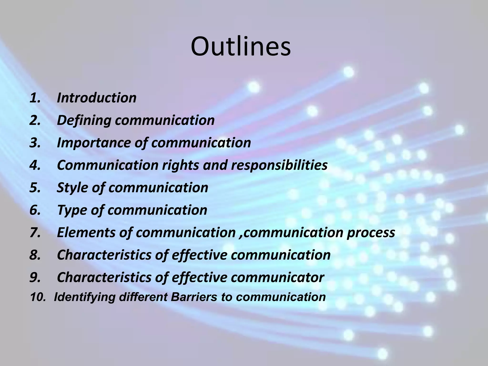 Effective communication requires clear, accurate, and timely messaging through an appropriate channel. It also requires an attentive receiver who understands the message and provides feedback. However, barriers like language differences, attitudes, and distractions can interfere with communication. An effective communicator establishes eye contact, listens actively, clarifies misunderstandings, acknowledges others, and uses body language and vocal tones that align with their message. Mastering both verbal and nonverbal communication skills is important for building relationships and effectively conveying information.