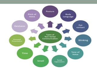 Communication styles vary between individuals and depend on both the sender and receiver. Effective communication requires consideration of barriers like authority, language, personality, and gender. True communication is only achieved when barriers are identified and removed through an anti-oppressive approach. Verbal communication includes both written and oral exchanges, while non-verbal communication conveys messages through gestures and body language to supplement verbal interactions. The communication process involves a sender encoding a message, choosing a channel to send it through, a receiver decoding the message, and feedback to assess understanding. Noise can also interfere with successful transmission and interpretation of the message.