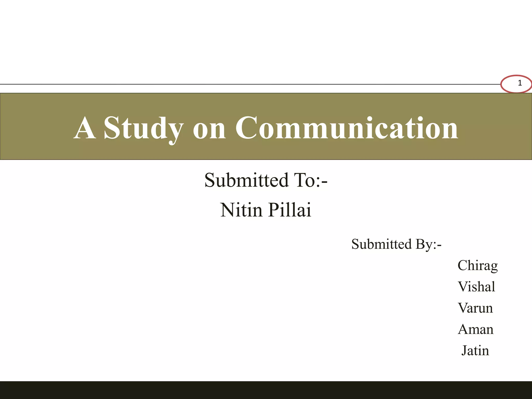 This document presents a study on communication. It defines communication as the sharing of information between individuals through three primary steps: having a thought or idea, encoding it into a message, and the receiver decoding the message. The document then discusses various definitions of communication from different authors. It proceeds to identify several common barriers to effective communication, such as noise, time and distance limitations, information overload, language barriers, and cross-cultural differences. In the conclusion, the document summarizes that effective management of communication requires consideration of rhetoric, identity, and goals, and discusses best practices for managerial communication.