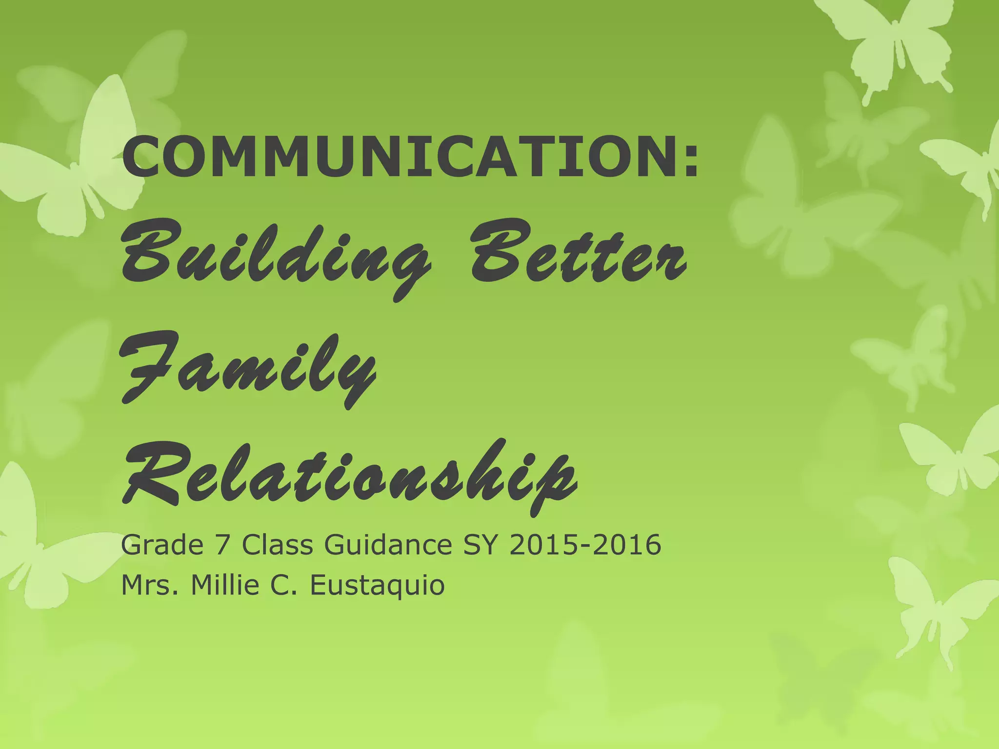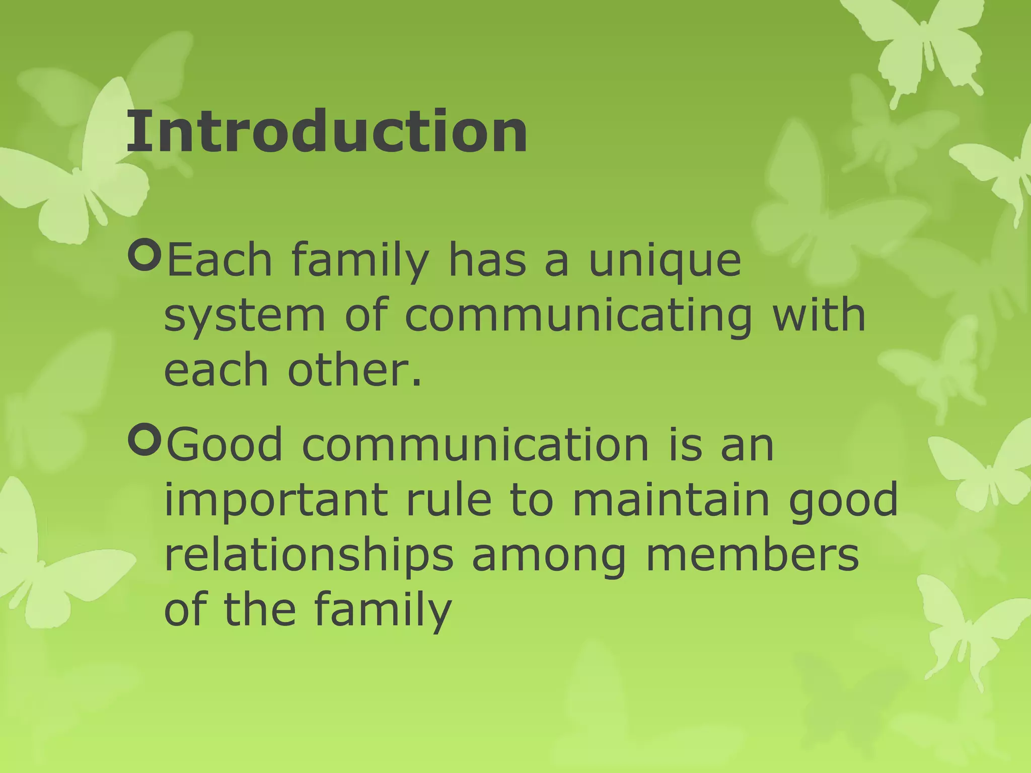 This document discusses the importance of effective communication within families. It defines communication as the exchange of information between family members, including thoughts, feelings and connections. Good communication is important for maintaining strong family relationships and resolving problems. The document outlines different types of communication styles, such as direct vs indirect and clear vs masked. It emphasizes the importance of listening, being respectful, resolving issues and maintaining open communication to build strong family bonds. Effective communication is described as key to healthy family functioning and satisfaction within relationships.