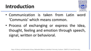 This document defines and describes different types of communication. It begins by defining communication as the exchange of ideas, thoughts, feelings, and emotions through speech, signals, writing or behavior. It then describes two main types of communication - verbal and non-verbal. Verbal communication refers to communication through words, both oral and written. Non-verbal communication includes gestures, facial expressions, body language, touch, sign language, time, and paralanguage. The document also discusses interpersonal, intrapersonal, extrapersonal, group, and mass communication. It notes that communication can establish understanding or lead to conflict, and concludes by thanking the reader.