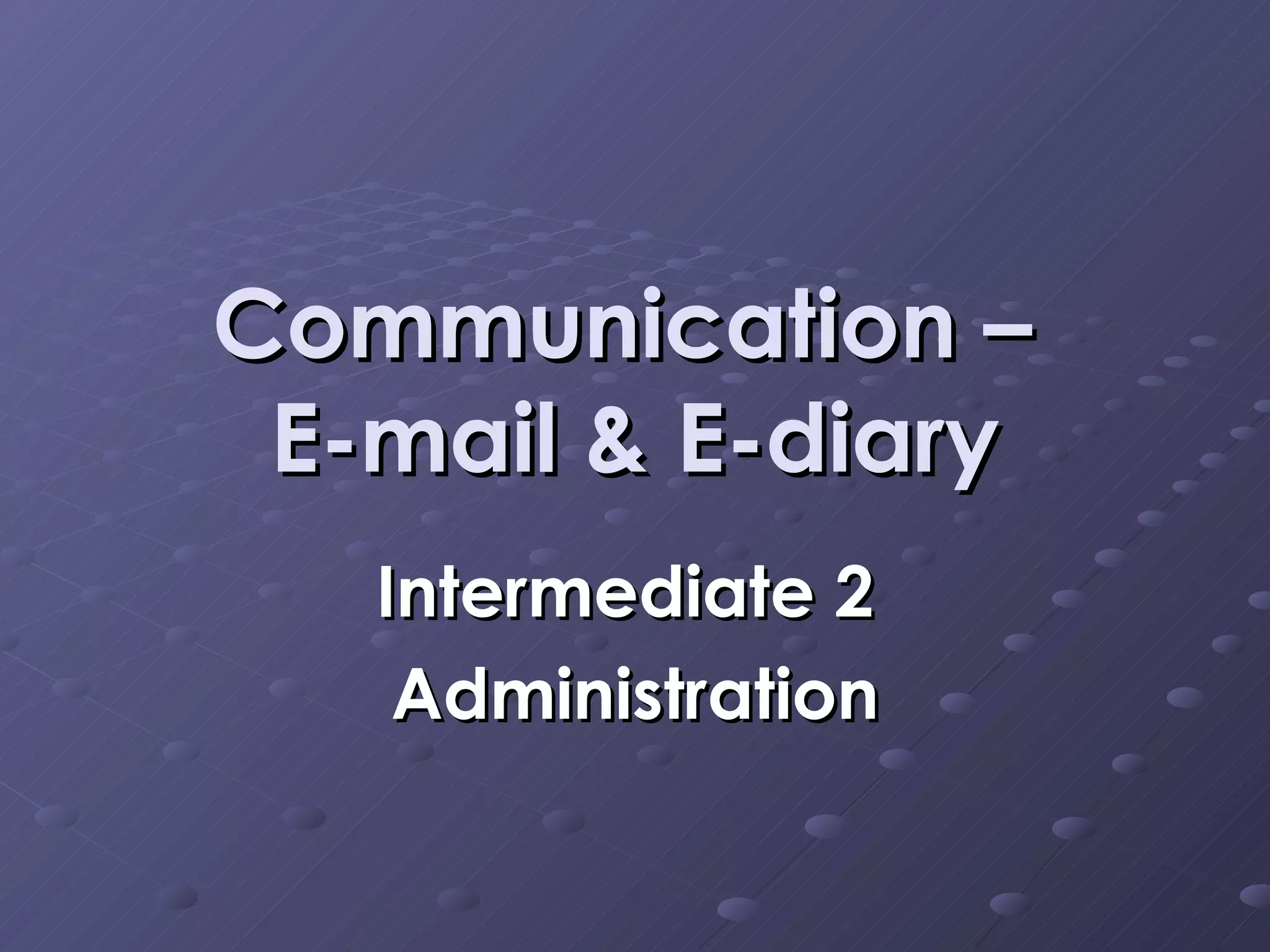 An e-diary is an electronic calendar that allows users to schedule, view, and store appointments and events. Some advantages of an e-diary are that it can help prevent double-booking, allow reminders to be set for upcoming appointments, and enable diaries to be shared with others. The document provides instructions on how to access and create an e-diary using Microsoft Outlook. Students are tasked with creating an e-diary scheduling their classes, appointments, and plans for the rest of the week.
