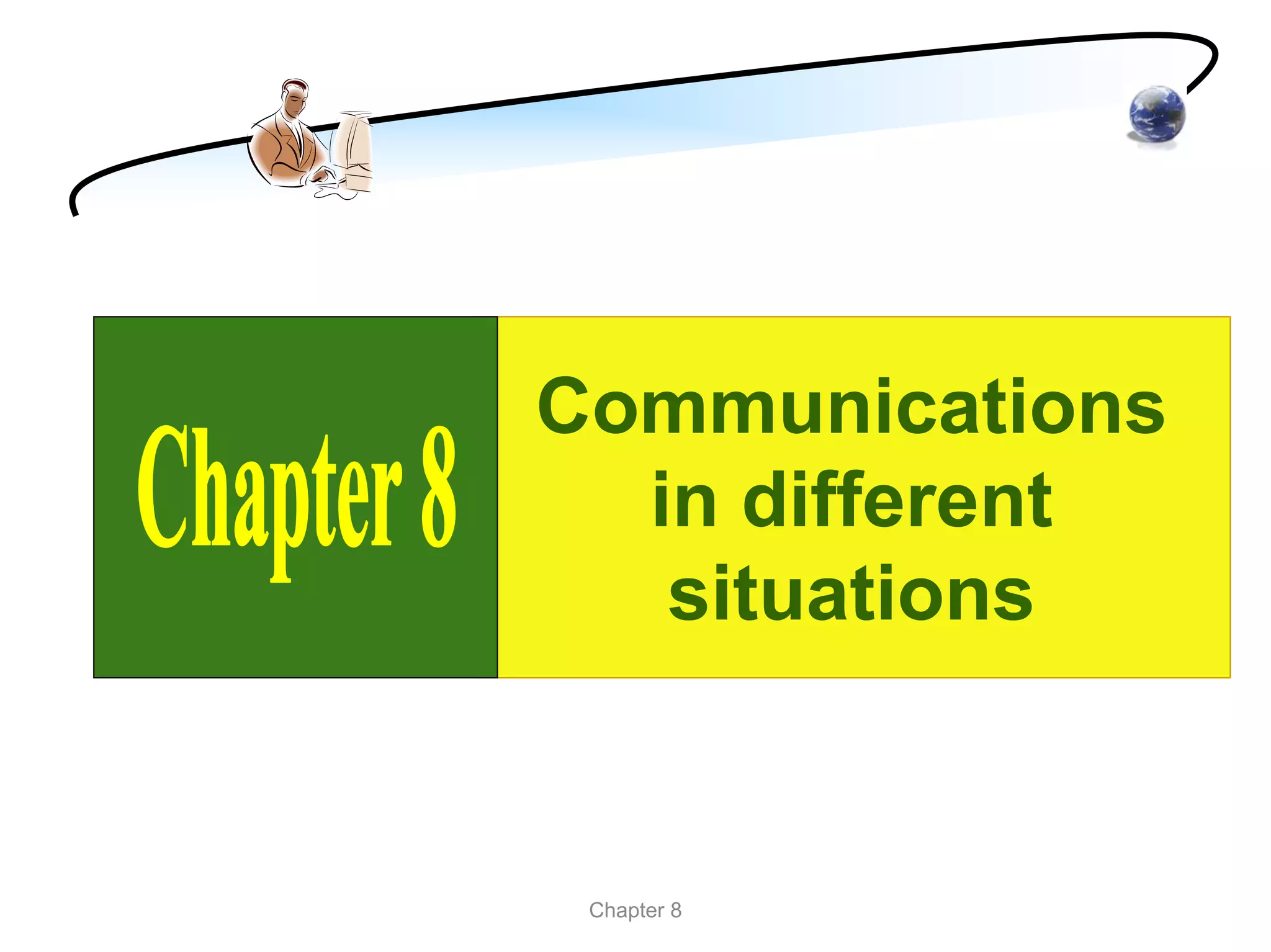 Chapter 8 discusses the importance of adapting communication skills to various situations within organizations, highlighting oral communication, body language, and telephone etiquette. It covers different types of communication, including face-to-face interviews, presentations, meetings, and written formats like letters, memos, and reports. The chapter emphasizes the need for preparation, active listening, and clear messaging to enhance effective communication.