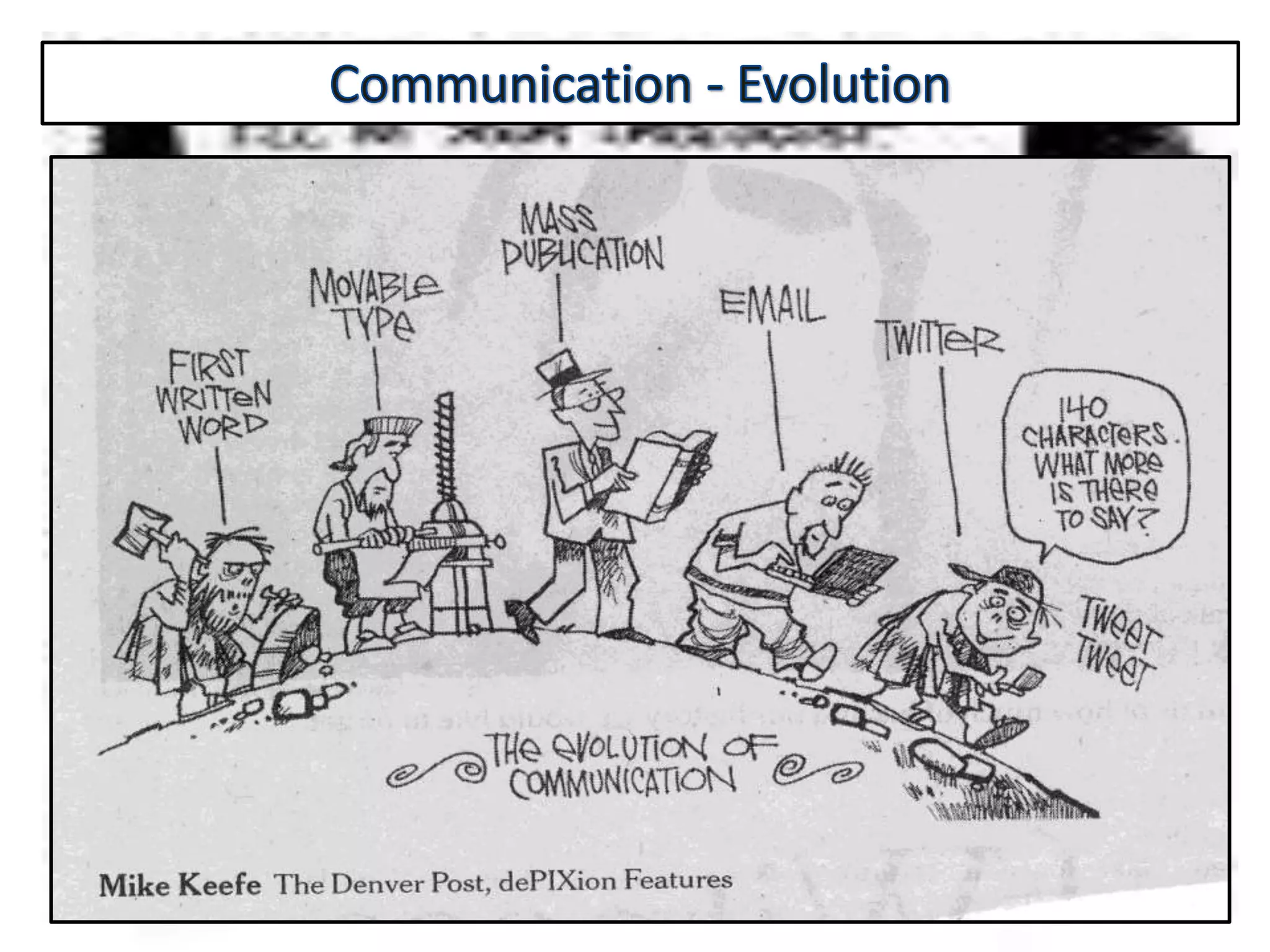 Communication is the process of exchanging ideas, feelings, and information between two or more people to reach mutual understanding. It involves a sender encoding a message, transmitting it through a medium, which is then decoded by the receiver. Effective communication requires clarity, consistency, and credibility. The document discusses various types of communication including intrapersonal, interpersonal, group, public, and mass communication. Non-verbal communication complements verbal communication through body language, facial expressions, touch, space, and other cues.