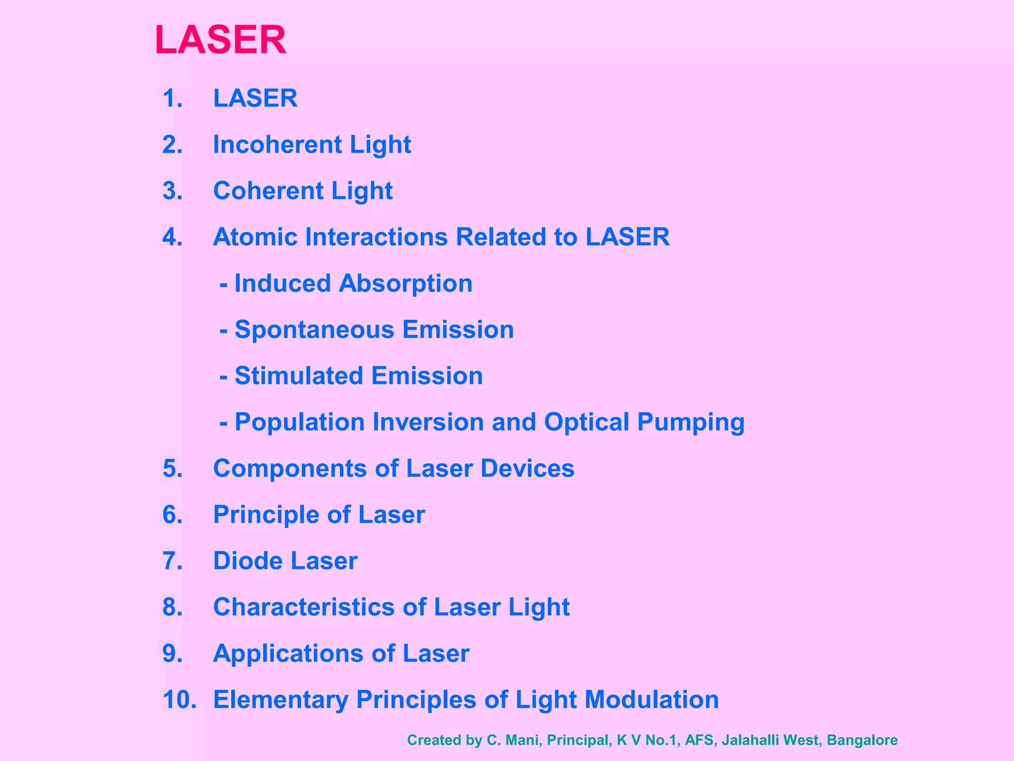 1. Lasers produce coherent light through stimulated emission of radiation.