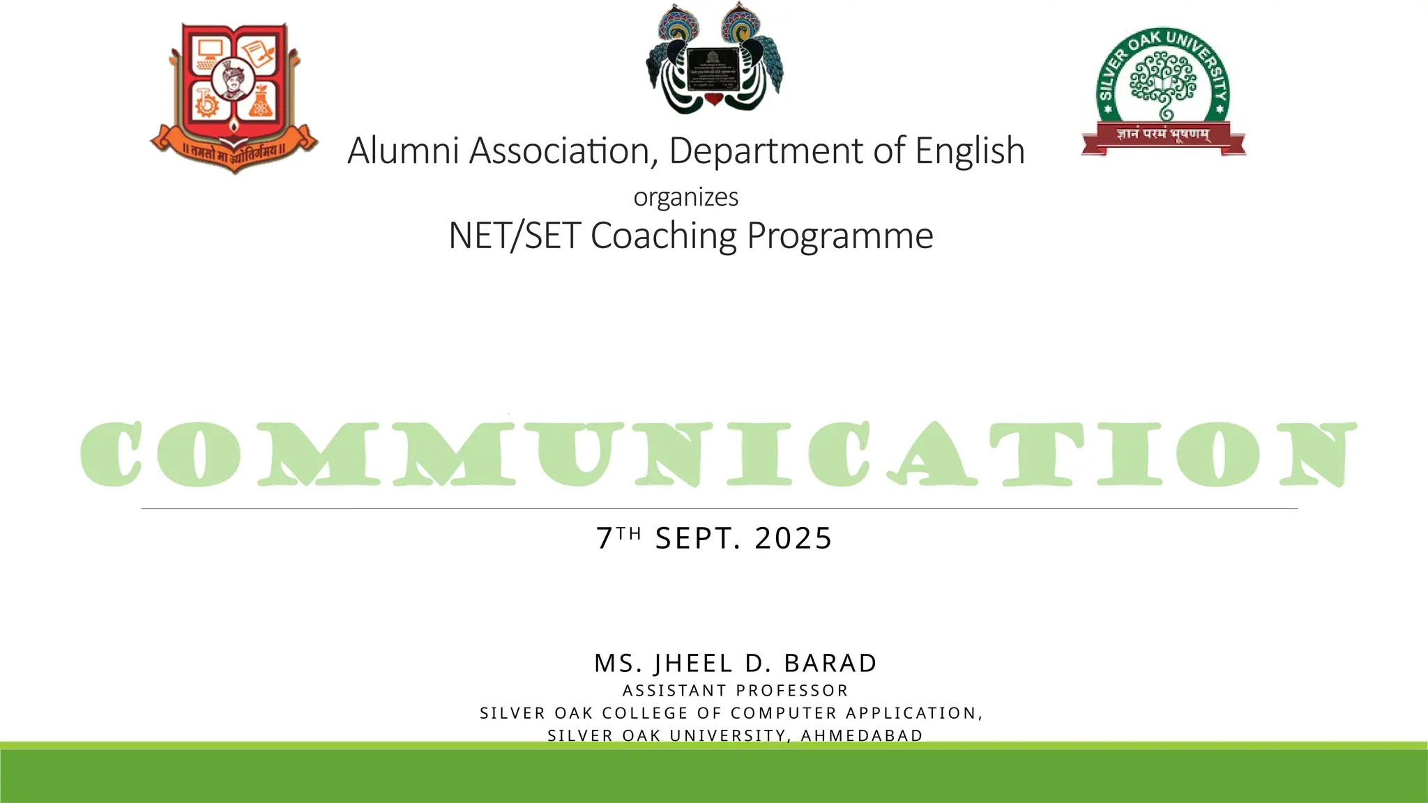 This presentation was delivered during a session on Communication as part of the NET-SET Guidance Programme, organized by the Alumni Association of the Department of English at M.K. Bhavnagar University.