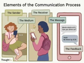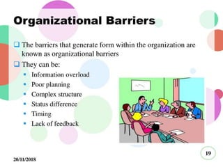 The document discusses the importance of communication in managerial activities, emphasizing its role in direction, supervision, motivation, and leadership. It categorizes communication into formal and informal types, detailing the communication process and barriers that can hinder effective communication. Various definitions and models of communication are presented, highlighting its significance for organizational coordination, decision-making, managerial efficiency, and fostering cooperation.