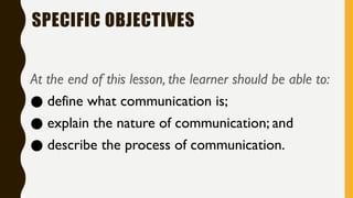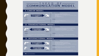 The document outlines the nature and process of communication, emphasizing its importance as a fundamental human need for exchanging ideas and understanding each other. It explains various models of communication, including linear, interactive, and transactional, and identifies barriers that can hinder effective communication, such as physical, language, and emotional barriers. Furthermore, it highlights the significance of intercultural communication in fostering understanding and respect among diverse groups.