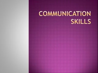 This document discusses communication skills, including defining communication, verbal and nonverbal communication, listening skills, communication styles, barriers to communication, and improving communication abilities. Effective communication involves clearly conveying a message through various channels while understanding the audience and context. Barriers like language or cultural differences can interfere with successful communication but can be overcome through awareness and relationship building.