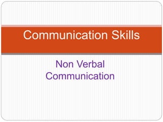 This document discusses different aspects of non-verbal communication. It defines non-verbal communication as transmitting information without words through body language, gestures, facial expressions, eye contact, posture, physical space and time. It describes several components of non-verbal communication including kinesics (body movement), proxemics (perception of space), chronemics (time usage), haptics (touch), oculesics (eye contact), and paralanguage (vocal cues). Specific examples are provided for each such as handshakes, eye contact, physical distance between people, speed of speech. Non-verbal communication allows people to express emotions, attitudes and views without using words.