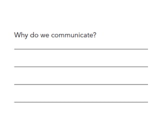 The document provides an introduction to communication skills, focusing on four types of communication: writing, speaking, listening, and conducting meetings. It discusses the importance of communication skills for job candidates and defines communication as "the process of creating shared understanding." Effective communication requires understanding the purpose and analyzing the audience. It also touches on how much is lost annually through unproductive meetings. The second part of the document discusses how conversations work and what makes them go wrong. It emphasizes the importance of context, relationship, structure, and behavior in conversations. Conversations are like verbal dances that require a balance of talking and listening.