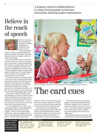 The document discusses the rising concern about children's speech and language communication needs, highlighting various educational initiatives to improve vocabulary and interaction in schools. It emphasizes the importance of early intervention and the use of visual prompts to enhance communication skills and reduce behavioral issues. Schools are collaborating with specialists to create supportive environments, benefiting children's academic performances and overall behavior.