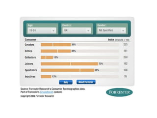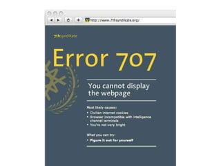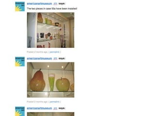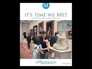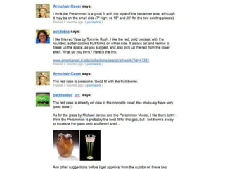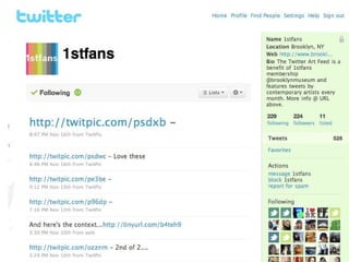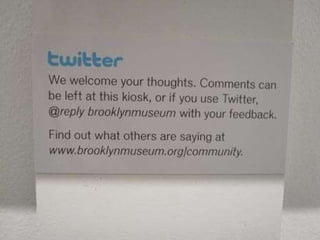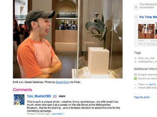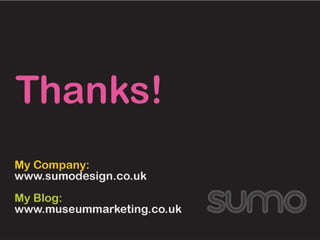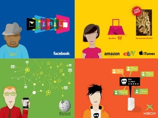 The heart of what I am going to talk about today is change. Change in the internet, change in audiences and change in museums. Change in the internet has been clear for anyone to see, with the shift from static web pages to dynamic and sharable content and social networking. The internet is no longer just a place to find information; it is now a forum for collaboration, a place to create, curate and share content online. This has changed the way we work, influenced the way we think and adjusted our individual place in society forever. The most popular places on the internet are now mostly social media websites and as mobile technology gives us always-on access to information, the internet is changing the way that we live. This technological shift has placed power into the hands of the masses as never before; I can access countless books at the touch of a button, find thousands of pictures of the Parthanon in Athens with a quick search, create web pages, publish books, organise events and connect with niche groups with the same interest as me. Information is power and this power is shifting. The explosion in social media has created a socio-cultural shift; the way that people act is changing and audience expectations are snowballing both online and offline, and museums need to think beyond simply building a fan page on Facebook, writing a blog or starting to use Twitter to keep up with the change. This is John. John spends several hours everyday curating his content on Facebook. This is a big part of who he is; he’s hyper connected, always in touch with his friends online and via Facebook on his phone, but this activity isn’t just a social one, it’s also a creative space for him, a place where he can express who he is and share his creativity. Then John logs on to his local museum’s website and it’s full of great content, but he can’t do anything with it – it’s static and it offers no real way for them to engage with it on the terms that he is used to. How do you deal with this kind of changing expectation? Well, the answer that so many museums have ceir museum, that you can’t really engage with. That doesn’t interest John. This is Claire and she uses eBay, Amazon and iTunes and what these three brands all have in common is that they give her tailored information based on her interests. She’s noticing that more and more websites are starting to do that now, but not her local art gallery. They recently had an exhibition of cubist painting which really interested her, but she had to dig down into the gallery’s website to find anything about it. Why didn’t they know she likes modern art from the way that she’d used the website in the past? Why didn’t the website put the stuff that interests her most on the homepage like Amazon does? If your audiences are able get information tailored to their interests when they visit eBay, Amazon and iTunes then they will expect the same from your institution. This is David, and his iPhone. It gives him access to all the information found on the internet within a few clicks on the screen. He’s really into history and he indulges that passion both online and in the real world. Online he uses Wikipedia, which lets him drill down through information, he likes that he can always click on another link and find out more, it make it seems like there is always more to learn. He likes visiting history museums to see the real objects, but he finds the information disappointing – it’s very linear and the interpretation seems to be targeted at kids. Why can’t every visitor explore the collection in the same way that they would approach Wikipedia, so some people would just get the basic information, but he could learn more? This is Ben and he’s a keen gamer. He spends a lot of time on his X-Box playing games with friends online. In the games he is always at the centre of the story, he is the protaganist, and the nar
