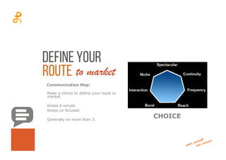 1. Define your route to market by choosing no more than 3 ways to reach customers to keep the strategy simple and focused.