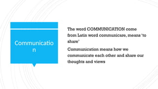 from Latin word communicare, means ‘to