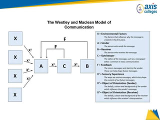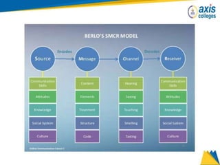 The document provides an overview of business communication including its meaning and objectives. It discusses the importance of business communication for timely decisions, planning, overcoming conflicts, and more. The principles of effective communication are also summarized, including clarity, feedback, consistency, and adequacy. Finally, the communication process and different forms of communication such as internal, external, written, and oral are described at a high level.