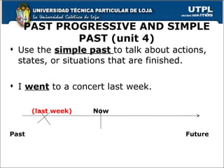 The document outlines the use of various English grammatical structures, focusing on tenses such as simple past and past progressive, their applications, along with instructions on modals, reflexive and reciprocal pronouns, and present perfect usage. It also includes a detailed program for a tutoring session conducted by Paul González, specifying the schedule, topics covered, and materials used during the presentation. Overall, it serves as a comprehensive guide for teaching English grammar and organizing a tutorial class.
