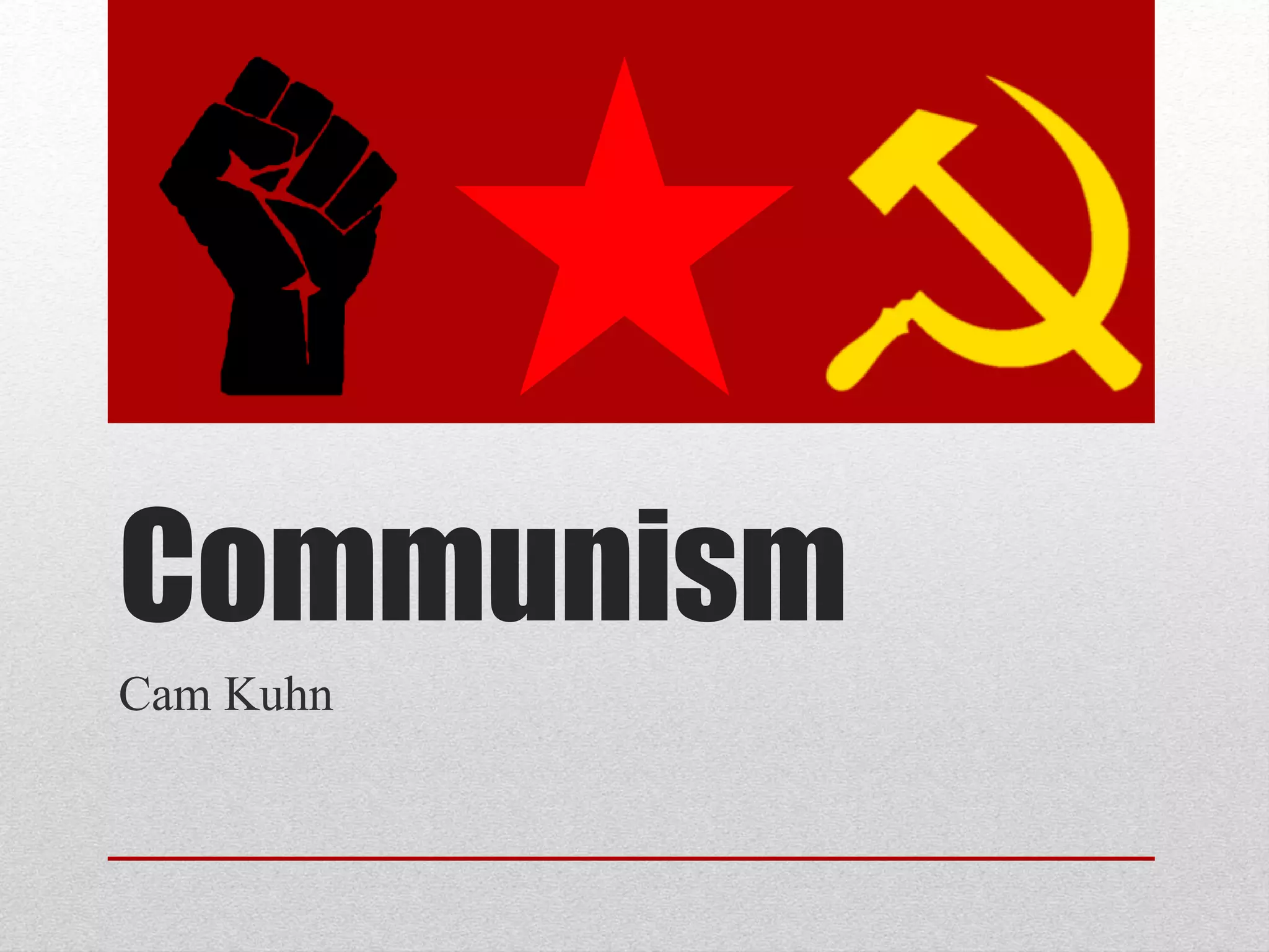This document defines and discusses communism. It begins by defining communism as a stateless, classless, moneyless society with abolished private property. It then discusses major communist thinkers like Marx, Lenin, Stalin, and Mao. Examples of communist states given include the USSR, PRC, Cuba, and potentially North Korea. The document explores arguments for communism based on morality and democracy, and counters common arguments against communism like the idea that humans need incentive and that it only works in theory.
