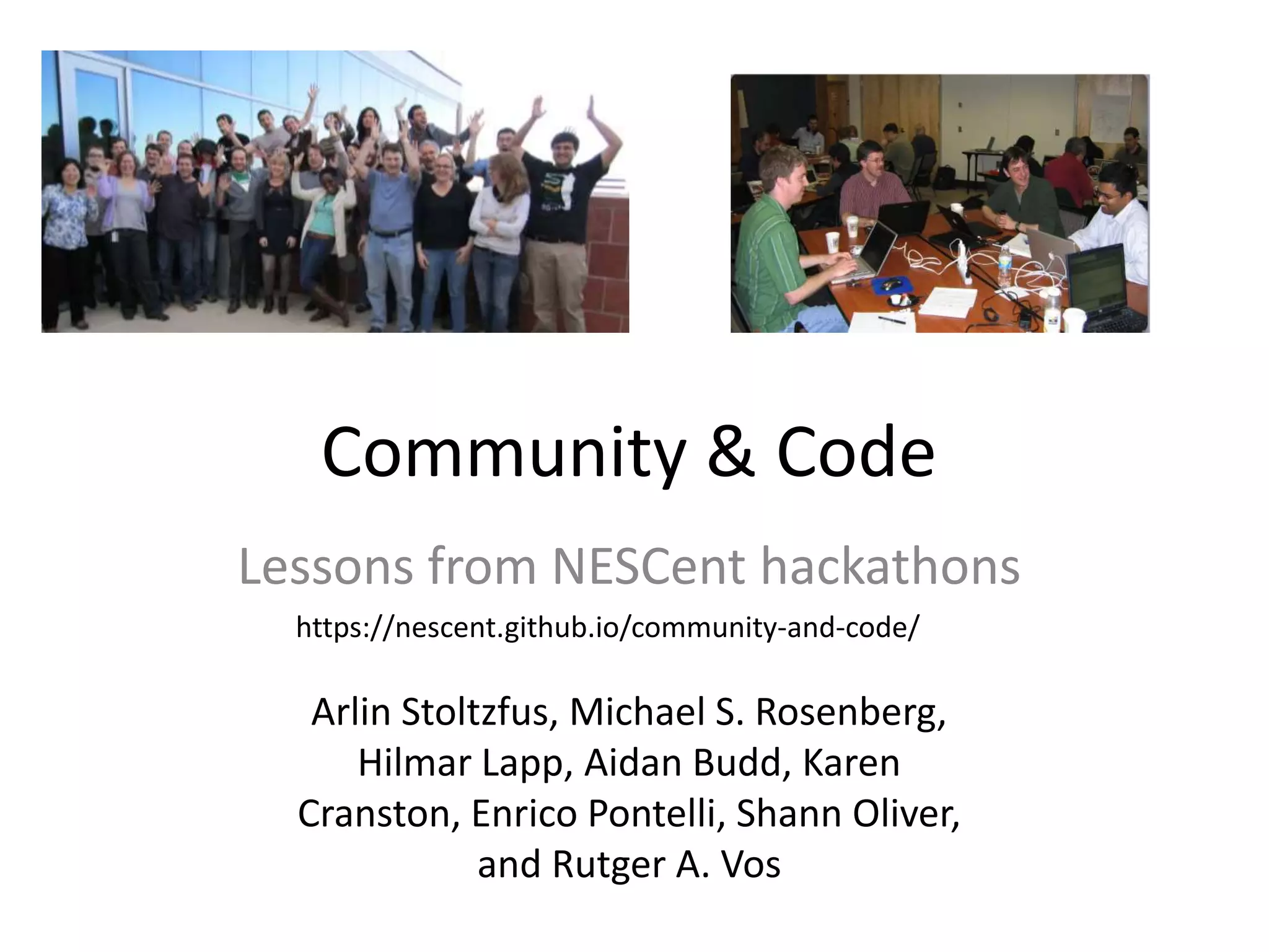 The document analyzes the outcomes and best practices from a series of nine NESCent hackathons, focusing on community building and open science principles. It outlines methods for effective theme selection, participant engagement, logistics, and team formation while highlighting the diverse results generated, including project repositories and publications. Key lessons emphasize the importance of inclusivity, effective communication, and pre-event engagement to foster a productive environment.