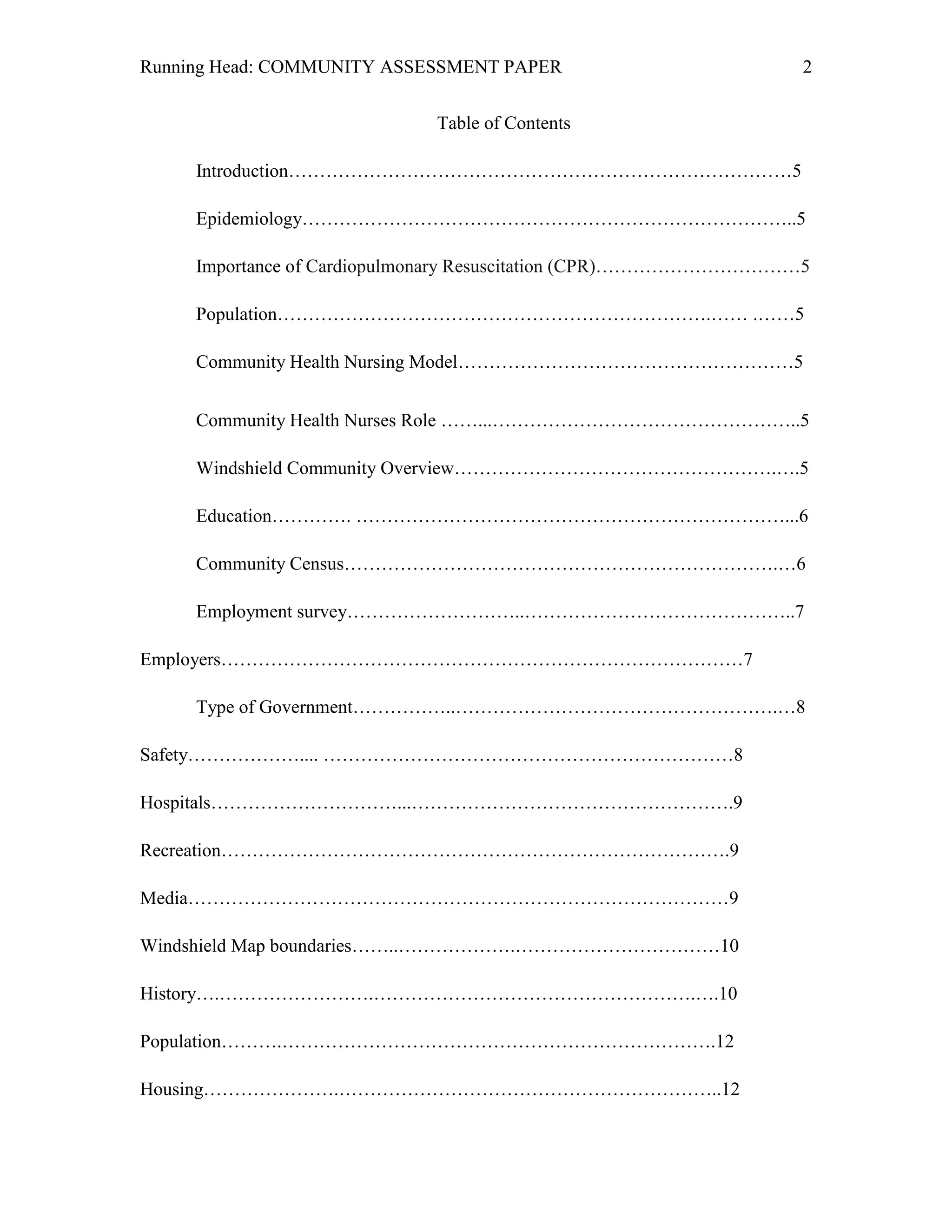 This document provides a community assessment of Saratoga Springs, New York focusing on cardiopulmonary resuscitation (CPR) and the role of community health nurses. It includes a demographic profile of the city, noting a population of 26,727 with 48.28% male and 51.72% female. Heart disease is the leading cause of death. The document describes the community using windshield surveys and key informant interviews. It analyzes epidemiological data on sudden cardiac arrest and discusses the role of community health nurses in providing CPR education and training to increase awareness of its importance. The goal is to promote heart health through primary prevention methods in the community.