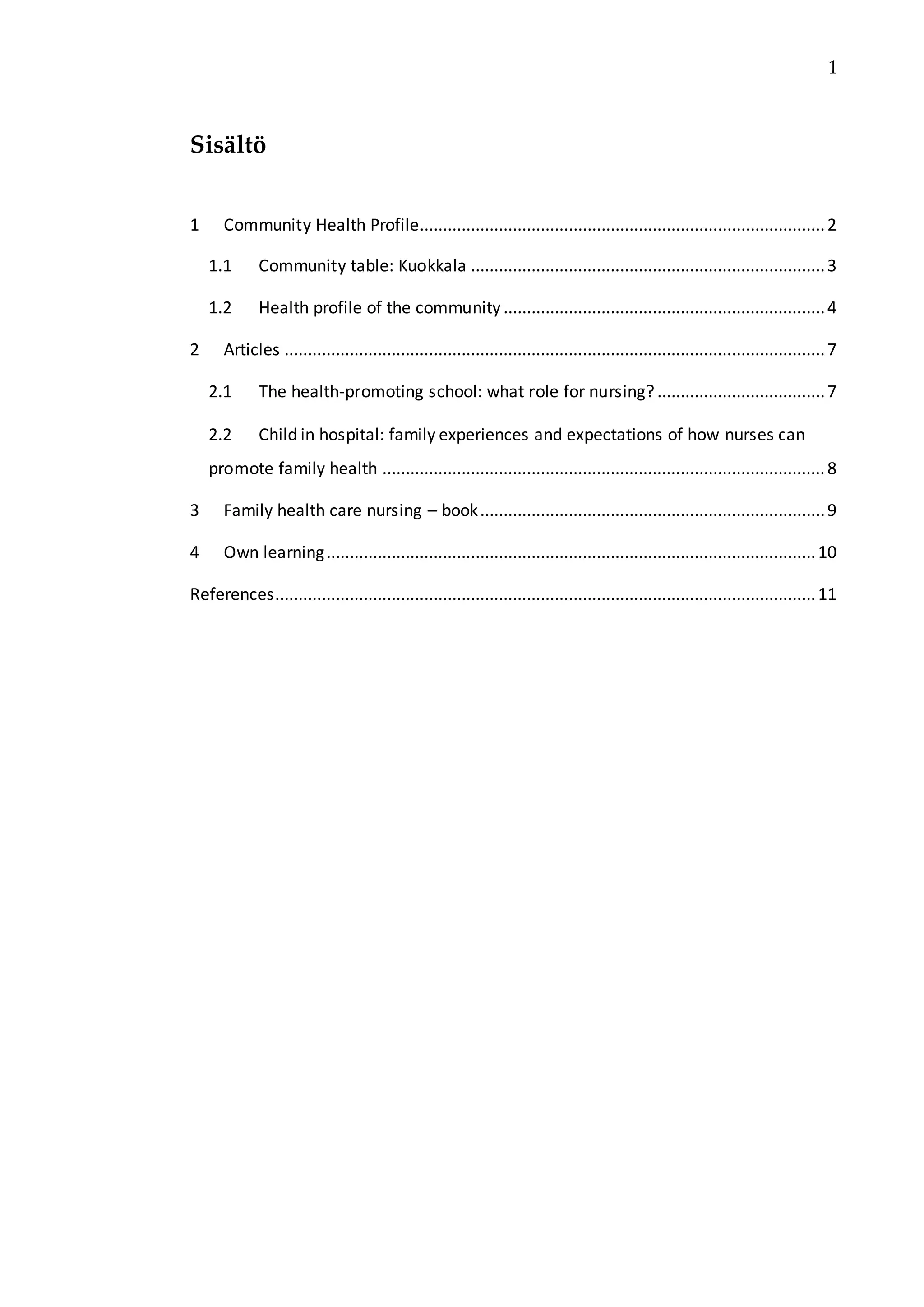 1) A profile of the community of Kuokkala, Finland including demographics, resources, and health services.