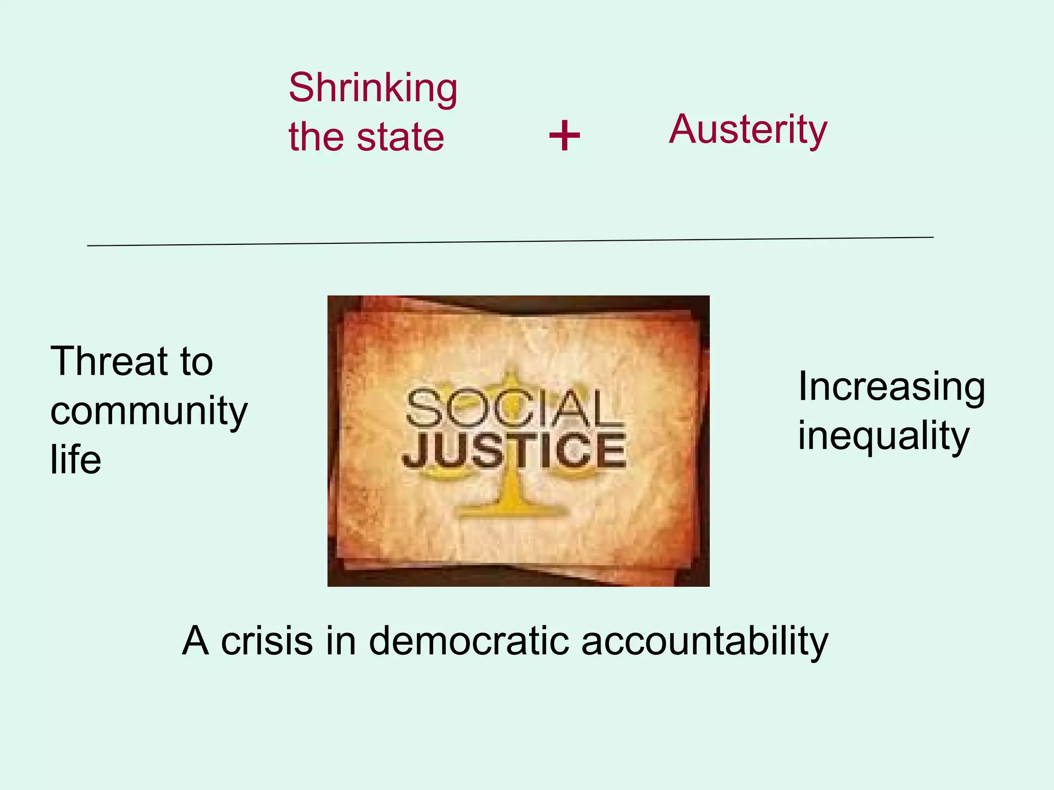 This document discusses the negative impacts of austerity and shrinking the state, including threats to mental health, weakened social networks, and democratic accountability. It advocates for asset-based community development and participatory accountability to promote community resilience, tackle health inequalities, and save money. Strong social networks are shown to reduce mortality risk and enhance control. A resident-led partnership approach can lead to responsive services that address community needs and improve outcomes. Modest investments in these programs can yield high social returns through health and social benefits.
