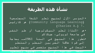 المقال يتحدث عن نشأة منهج تعلم اللغة المجتمعية الذي أسسه تشارلز أ. في عام 1961، مع التركيز على أهمية العلاقة بين المعلم والمتعلم. يتناول المنهج تصميمه ودوره في تعليم اللغة الثانية ويركز على التفاعل والتعاون بين المشاركين. يبرز المقال أيضًا أن نجاح المنهج يعتمد على قدرة المعلم على تسهيل تعلم الطالب وتحفيزه.