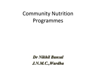 This document summarizes several key community nutrition programs run by the Indian government: