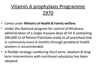 1) Vitamin A prophylaxis and programs to prevent nutritional anemia distribute supplements to at-risk groups through local health workers.