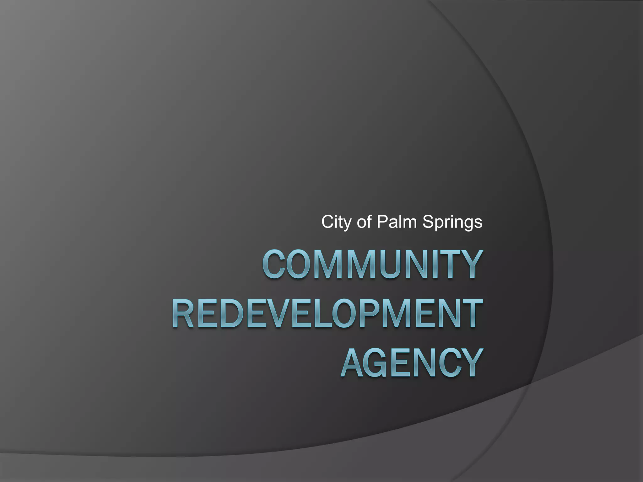 The document discusses redevelopment in California and the Palm Springs Community Redevelopment Agency. It provides details on projects funded by redevelopment, including community facilities, hotels, retail, housing, and infrastructure. It summarizes the impact of the Supreme Court ruling eliminating redevelopment agencies and the transition to successor agencies to wind down remaining projects and obligations.