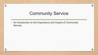 • Community serviceis an essential part of building a better society.