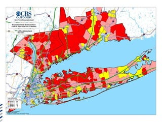 The document discusses advertising opportunities on the New York City commuter rail system, which includes the Long Island Rail Road and Metro-North Railroad. It notes that commuters on these rails come from upscale neighborhoods and have high average incomes. The summary highlights that advertising on these rails allows businesses to reach affluent commuters twice daily during their average 40-minute commutes, in a less cluttered environment than other media. Options mentioned include interior car cards, platform posters, and station dominations.