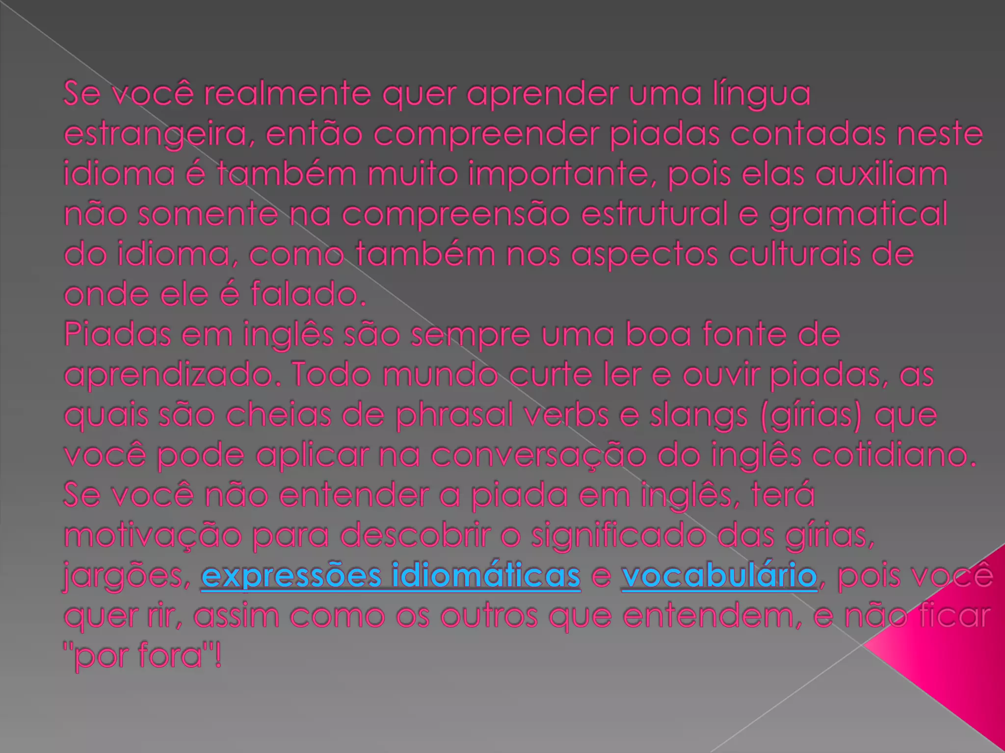 This document provides examples of jokes in English that can help learn the language. It explains that jokes help with understanding grammar, structure, and cultural aspects of where the language is spoken. Some jokes demonstrate verb tenses and include different tenses. Other jokes provide examples of abbreviations, expressions, numbers, and vocabulary that can expand one's knowledge. The document concludes by presenting additional English jokes and encouraging learning them to practice the language.