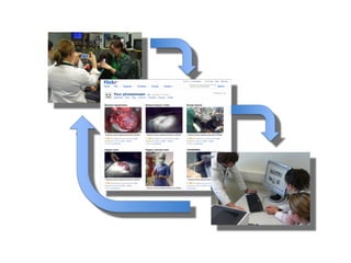 The CoMo project used mobile phones to support collaborative group work for distance learning students at the Royal Veterinary College. Students used their phones to capture photos of clinical cases, share them with peers and tutors, and document case progression over time. This helped support knowledge construction and provided tutors insight into what students were focusing on. Future research could explore more effective pedagogical designs for mobile learning and how multiple contexts can be supported through location-based tools and lightweight social interactions.