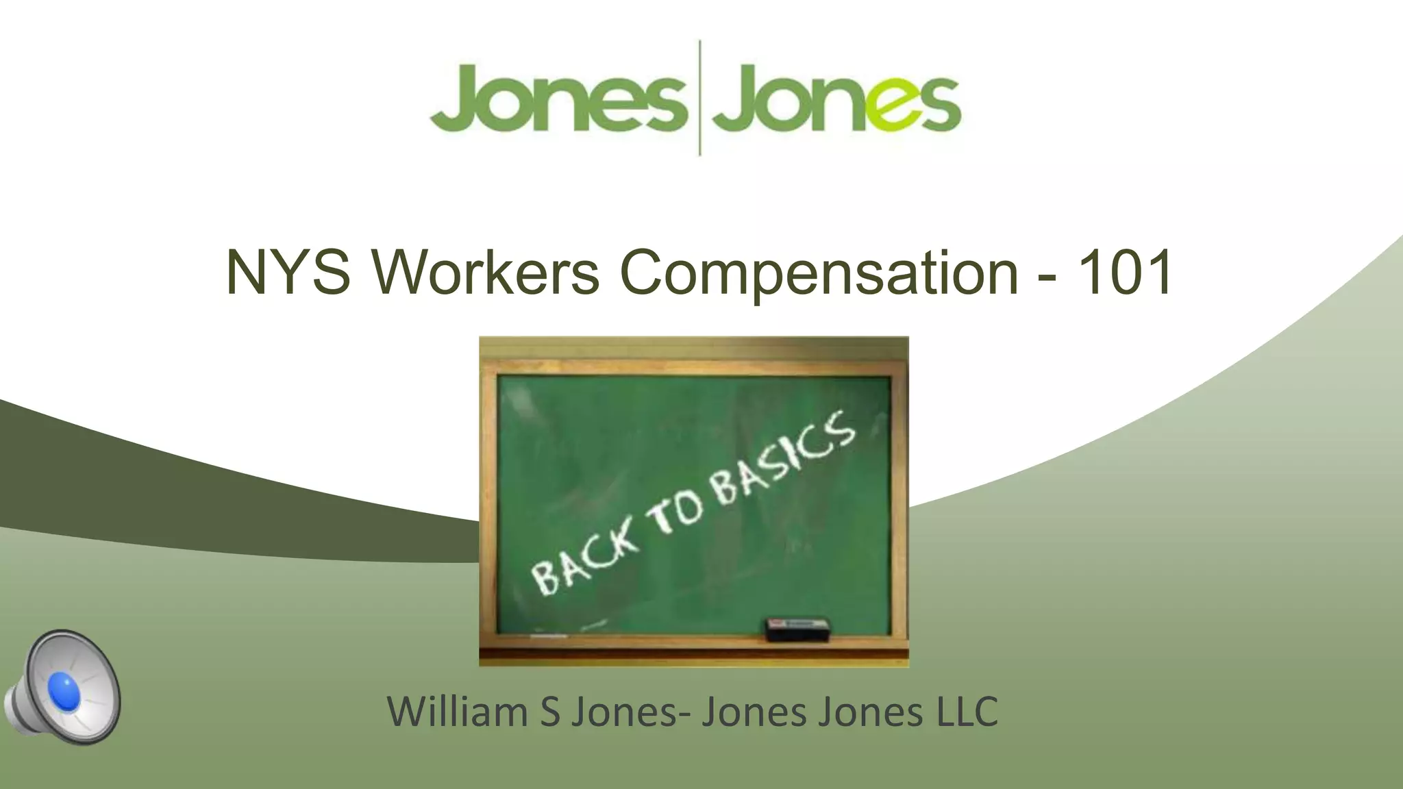 The document provides an overview of New York workers' compensation law, outlining who is covered, the claims investigation process, benefits provided, and reasons for denial of claims. Key aspects of the claims process are explained, including initial reporting of accidents, medical treatment and forms, employer responsibilities, and ongoing payments. Potential issues like consequential injuries and the appeals process are also briefly discussed.